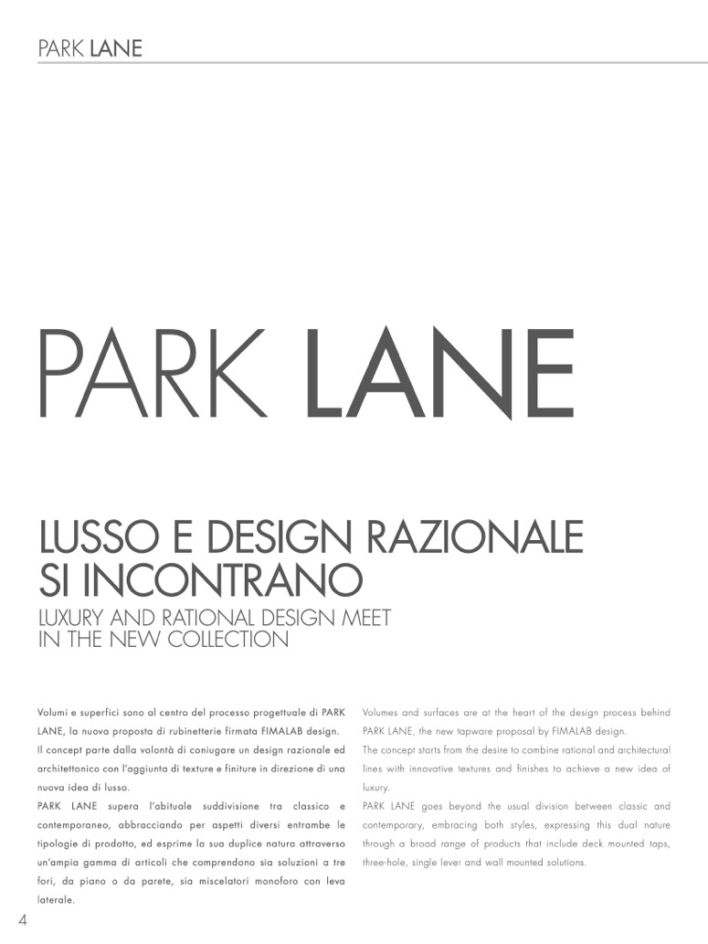 PARK LANE, the new tapware proposal by FIMALAB design.