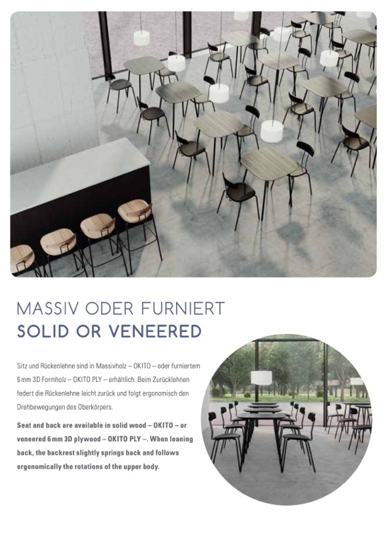 Seat and back are available in solid wood – OKITO – or