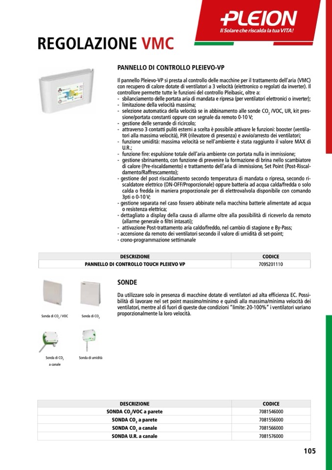 PANNELLO DI CONTROLLO TOUCH PLEIEVO VP