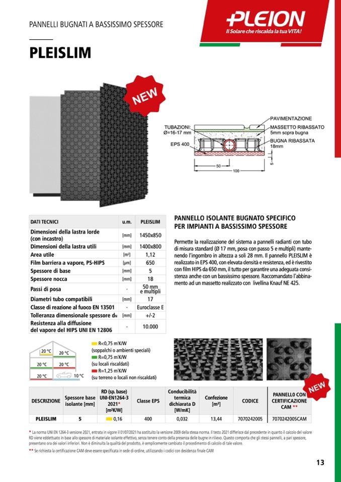 * La norma UNI EN 1264-3 versione 2021, entrata in vigore il 01/07/2021 ha sostituito la versione 2009 della stessa norma. Il testo 2021 differisce dal precedente in quanto il calcolo del valore