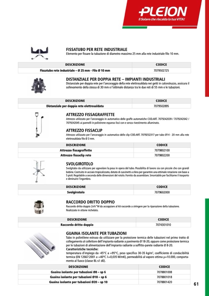 collegamento al collettore dell’impianto radiante a pavimento Ø 18-20, oppure come protezione termica