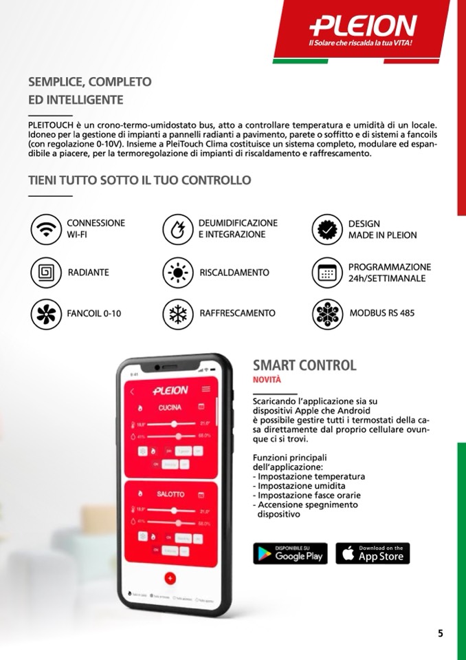 (con regolazione 0-10V). Insieme a PleiTouch Clima costituisce un sistema completo, modulare ed espan-