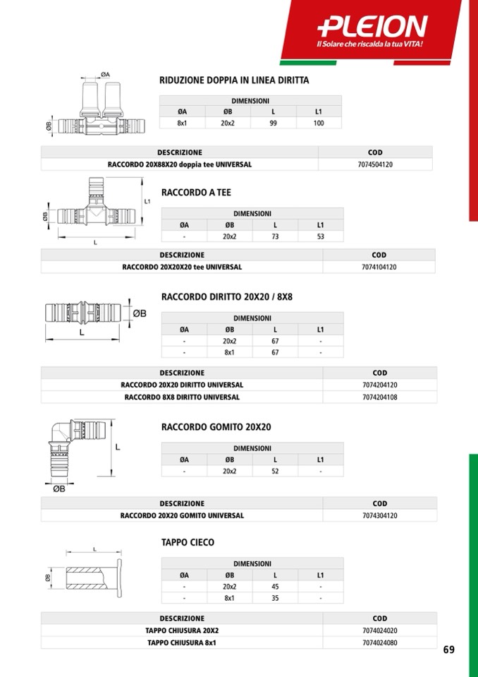 RACCORDO 20X20 DIRITTO UNIVERSAL