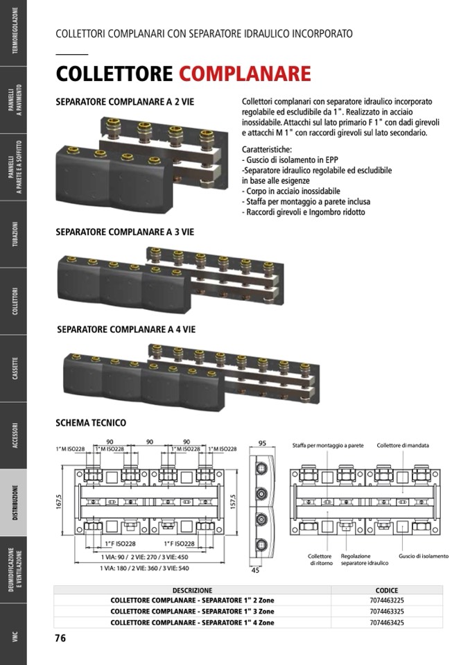 COLLETTORE COMPLANARE - SEPARATORE 1" 3 Zone