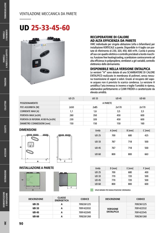 installazione VERTICALE a parete. Disponibile in 4 taglie con por-