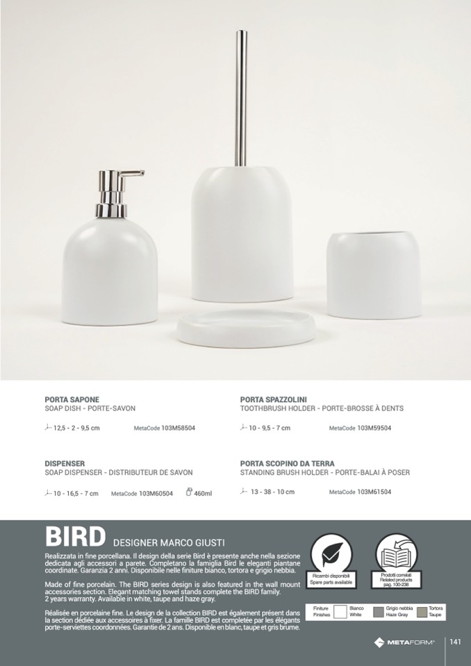 accessories section. Elegant matching towel stands complete the BIRD family.