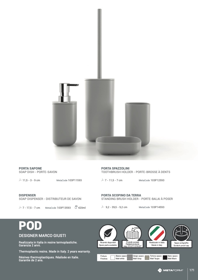 Thermoplastic resins. Made in Italy. 2 years warranty.