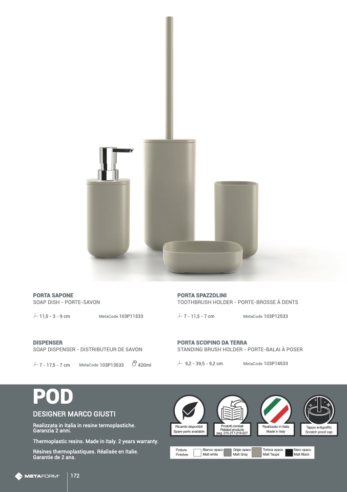Realizzata in Italia in resine termoplastiche.