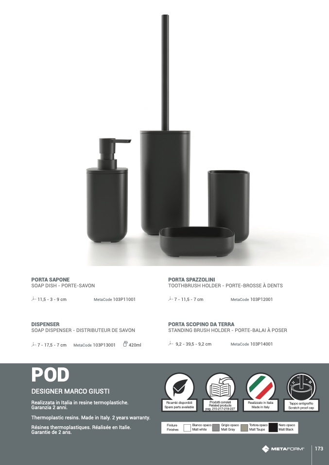 Realizzata in Italia in resine termoplastiche.