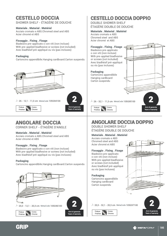 Acciaio cromato e ABS.Chromed steel and ABS