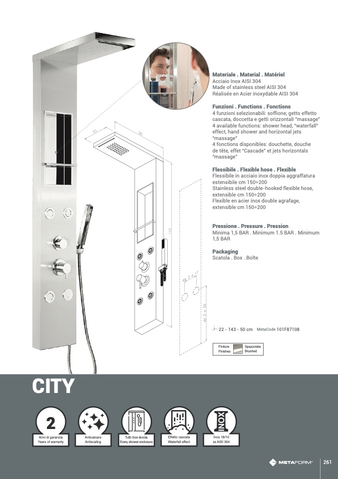 cascata, doccetta e getti orizzontali “massage”