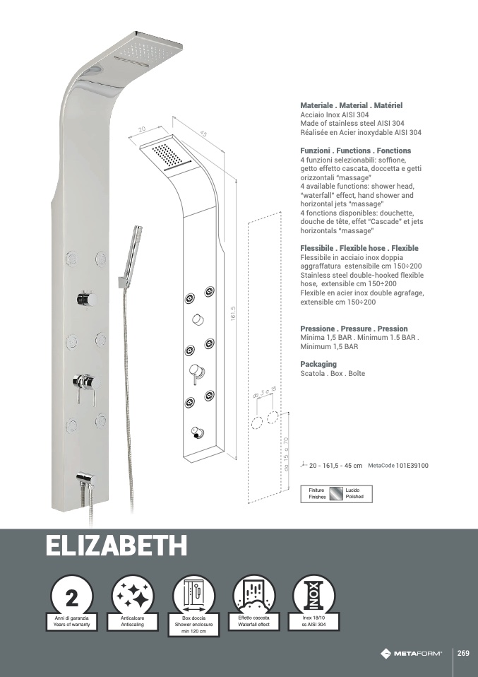 4 funzioni selezionabili: soffione,
