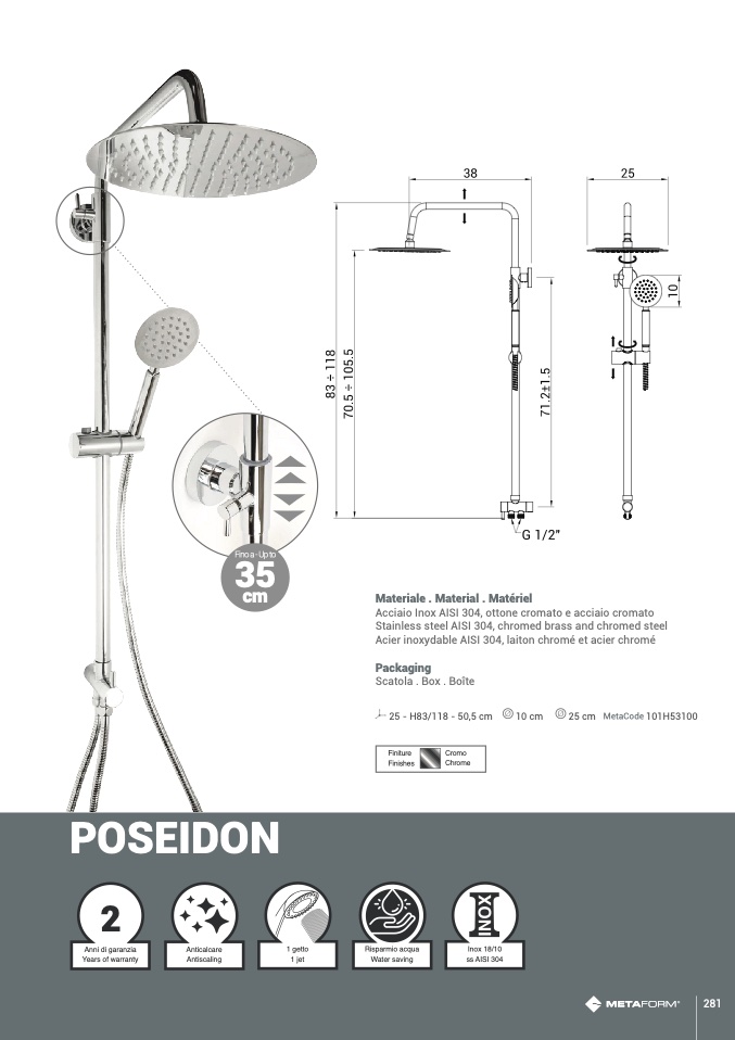 Acciaio Inox AISI 304, ottone cromato e acciaio cromato