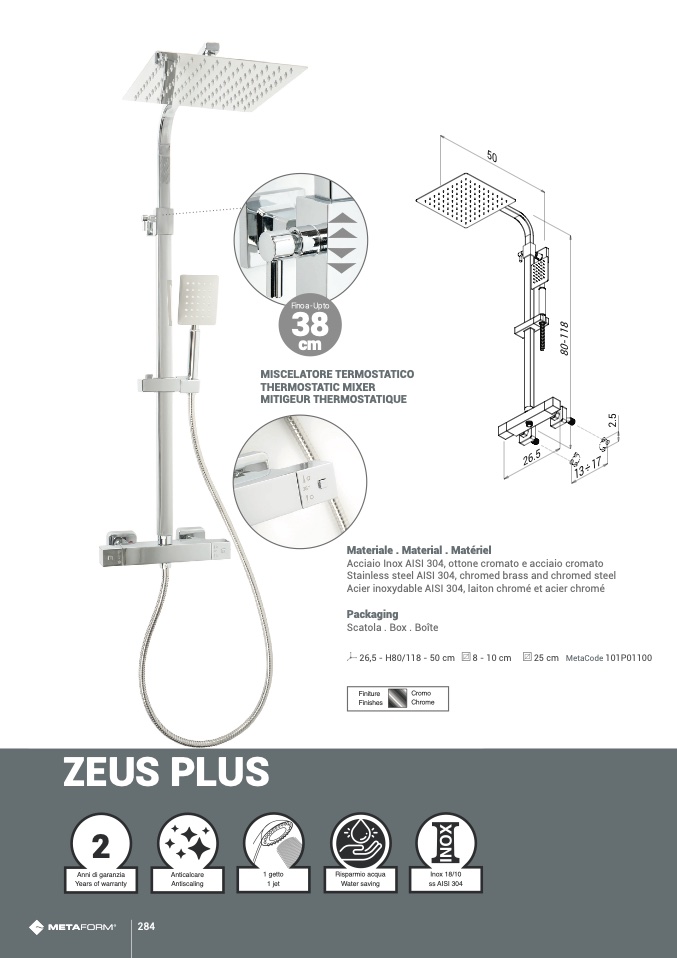 Acciaio Inox AISI 304, ottone cromato e acciaio cromato