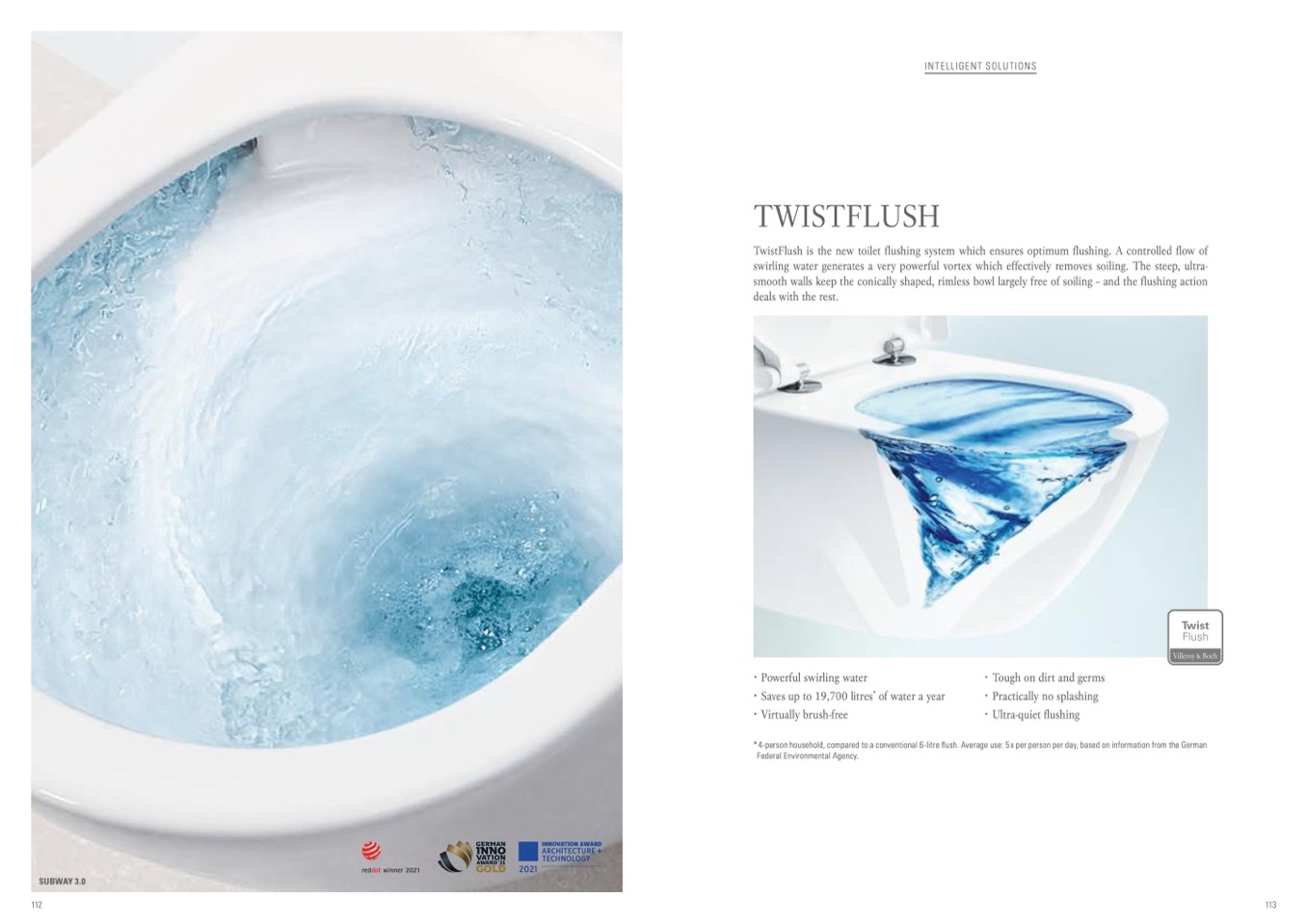 TwistFlush is the new toilet flushing system which ensures optimum flushing. A controlled flow of