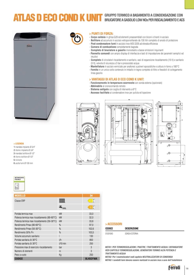 - Completo di circolatori riscaldamento e sanitario, vasi di espansione riscaldamento (10 lt) e sanitario