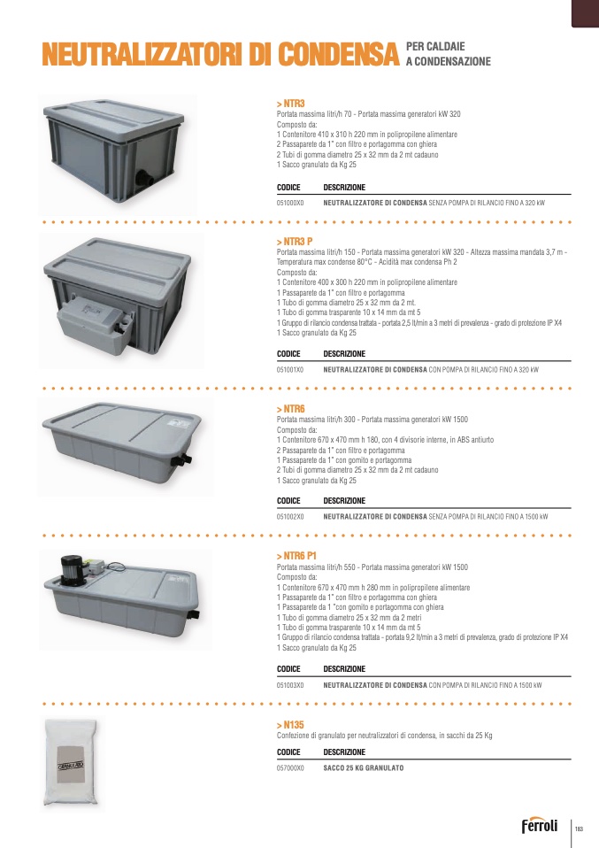 NEUTRALIZZATORE DI CONDENSA CON POMPA DI RILANCIO FINO A 1500 kW
