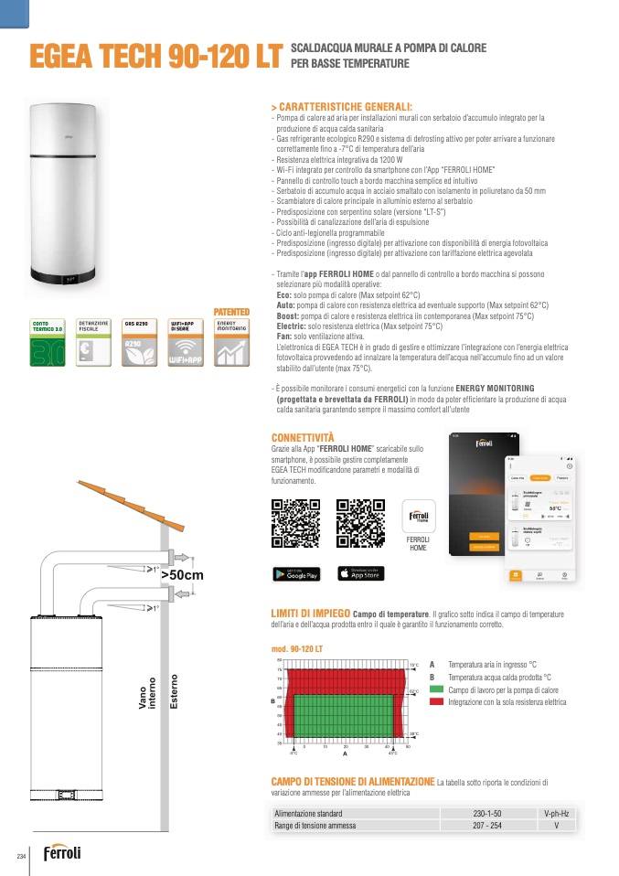 - Wi-Fi integrato per controllo da smartphone con l’App “FERROLI HOME”