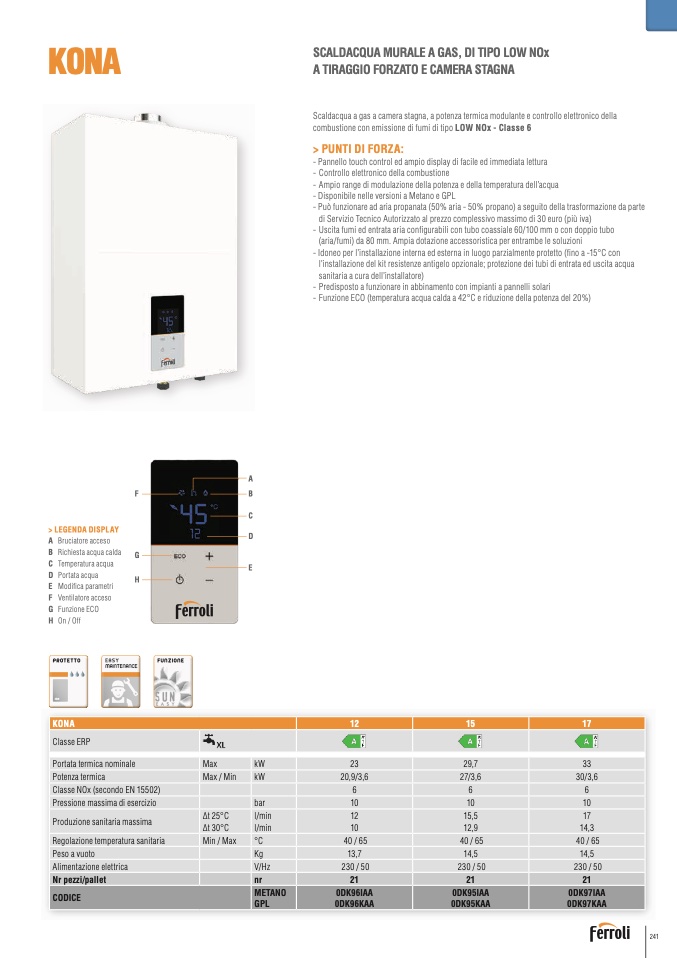 - Funzione ECO (temperatura acqua calda a 42°C e riduzione della potenza del 20%)