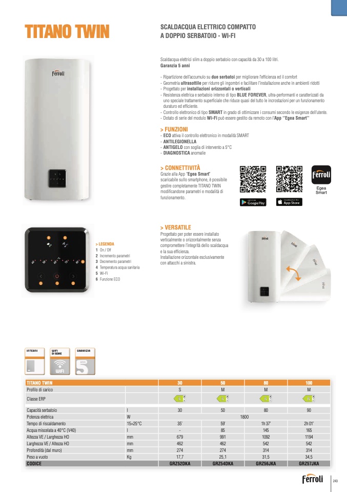 Dotato di serie del modulo Wi-Fi può essere gestito da remoto con l’App ‘’Egea Smart’’