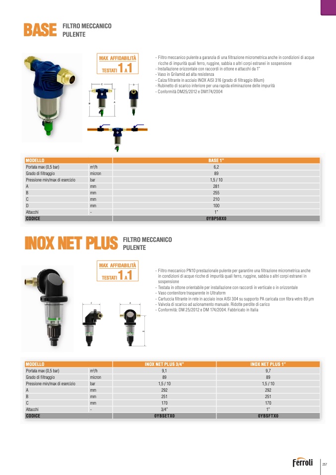 - Filtro meccanico pulente a garanzia di una filtrazione micrometrica anche in condizioni di acque