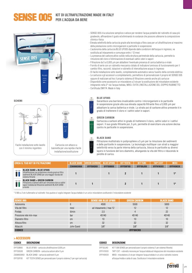 - SENSE 005 è la soluzione semplice e veloce per rendere l’acqua potabile del rubinetto di casa più