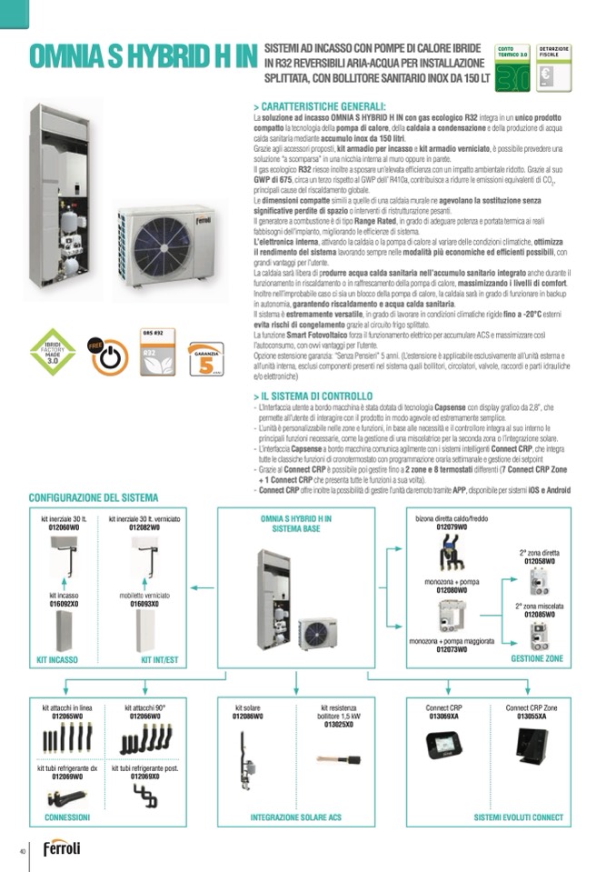 La soluzione ad incasso OMNIA S HYBRID H IN con gas ecologico R32 integra in un unico prodotto