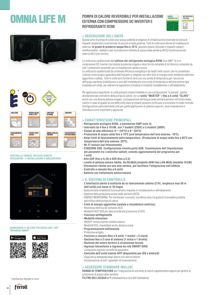 impianti residenziali e commerciali di piccola e media potenza. Tutte le unità sono idonee all'installazion