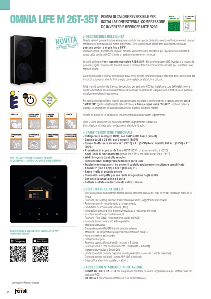 - Controllo remoto dell’unità tramite APP (iOS e Android)