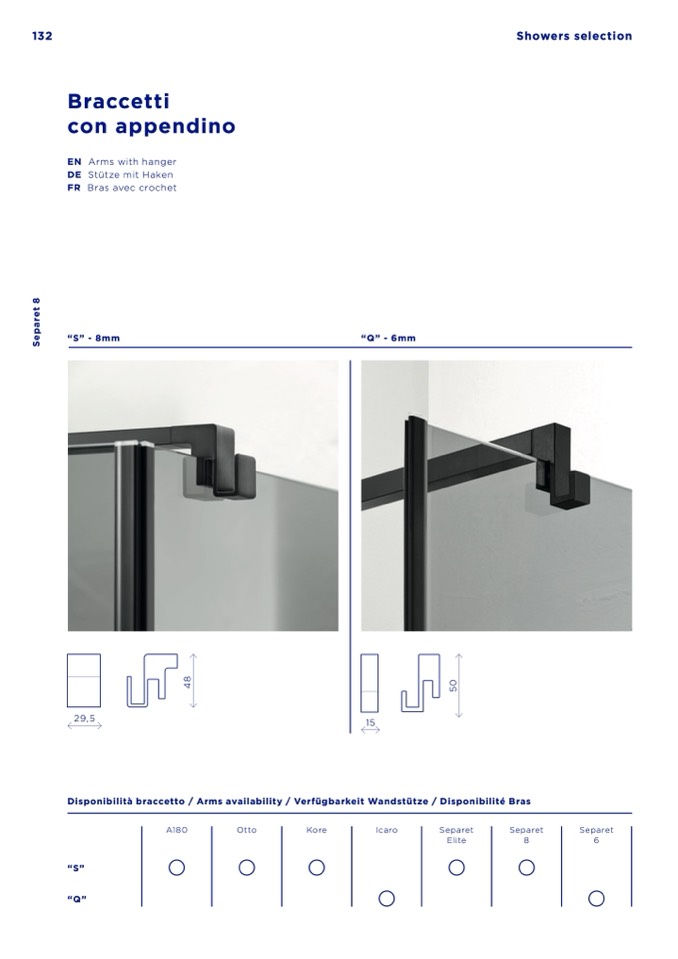 Disponibilità braccetto / Arms availability / Verfügbarkeit Wandstütze / Disponibilité Bras