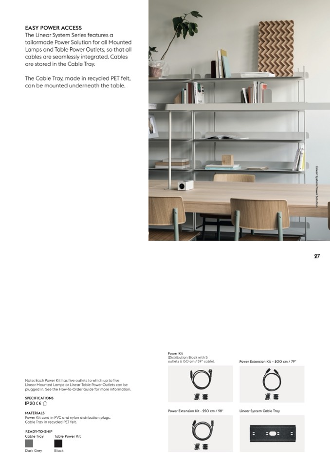 Linear Mounted Lamps or Linear Table Power Outlets can be