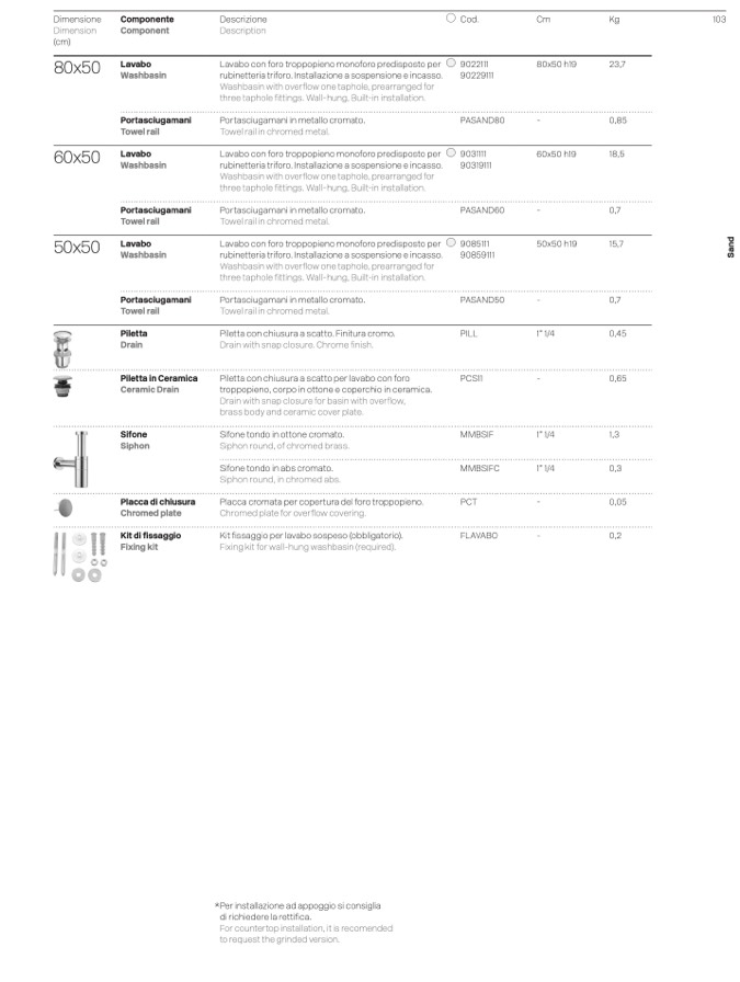 Kit fissaggio per lavabo sospeso (obbligatorio).