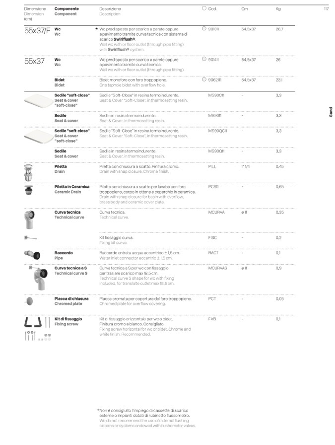 Wall wc with or floor outlet (through pipe fitting).