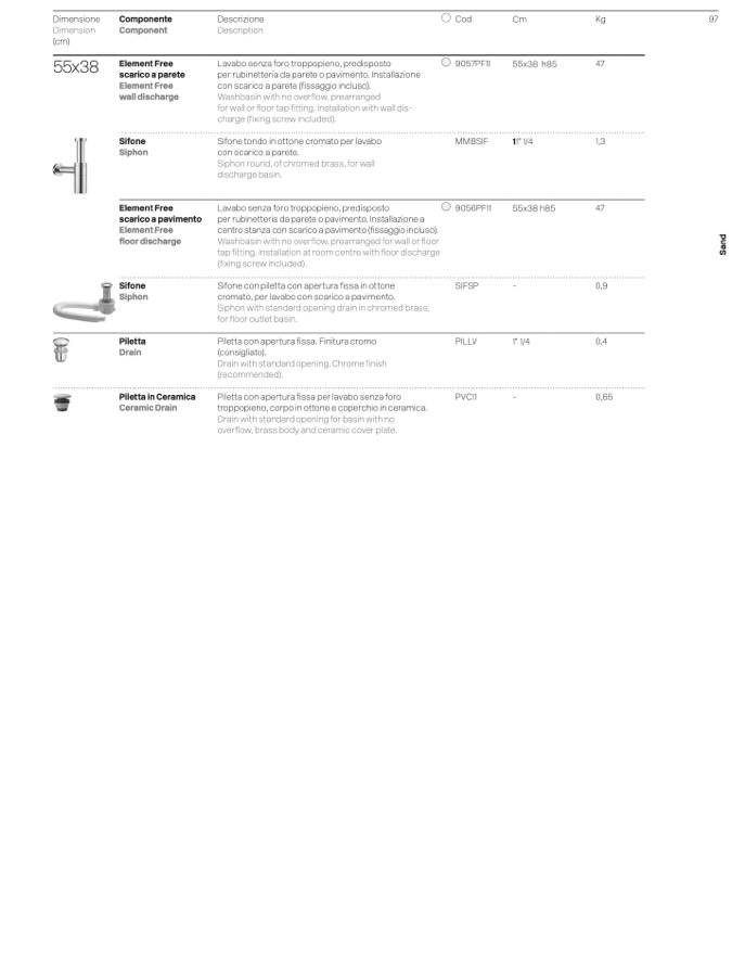 centro stanza con scarico a pavimento (fissaggio incluso).