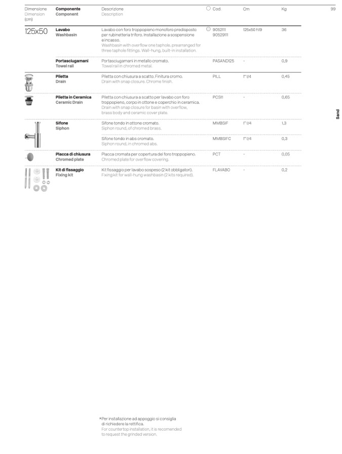 Lavabo con foro troppopieno monoforo predisposto