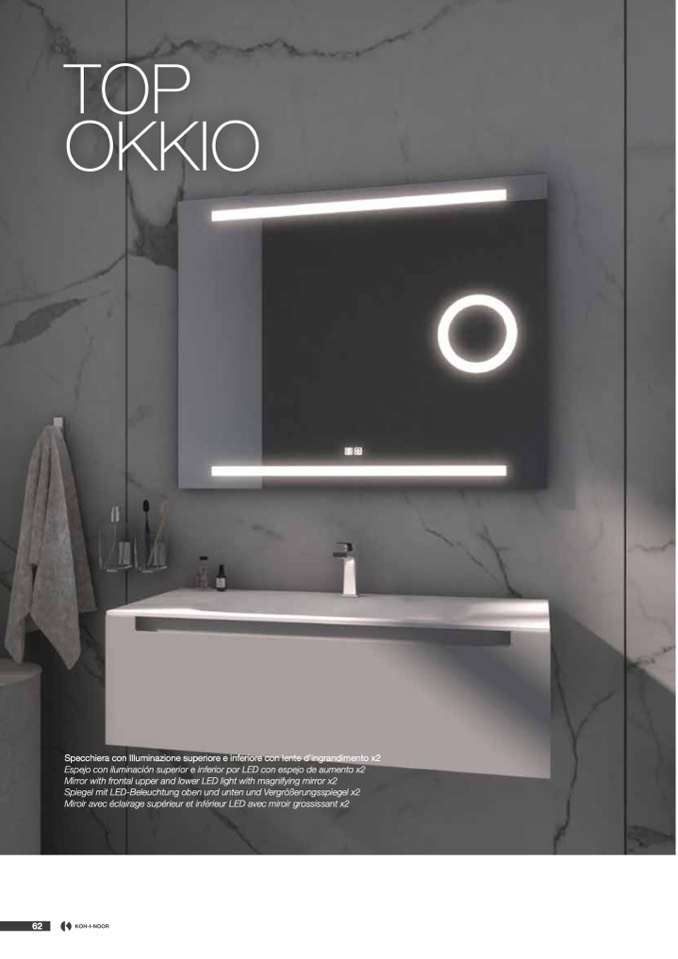 Specchiera con Illuminazione superiore e inferiore con lente d’ingrandimento x2