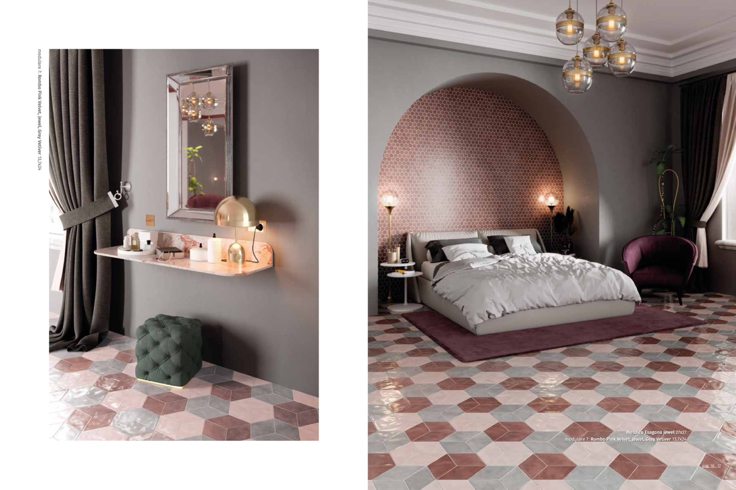 modulare 7: Rombo Pink Velvet, Jewel, Grey Vetiver 13,7x24