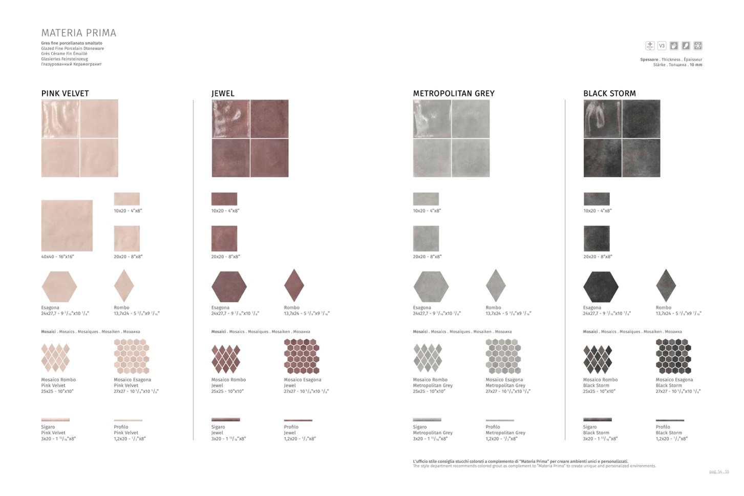 The style department recommends colored grout as complement to “Materia Prima” to create unique and personalized environments.