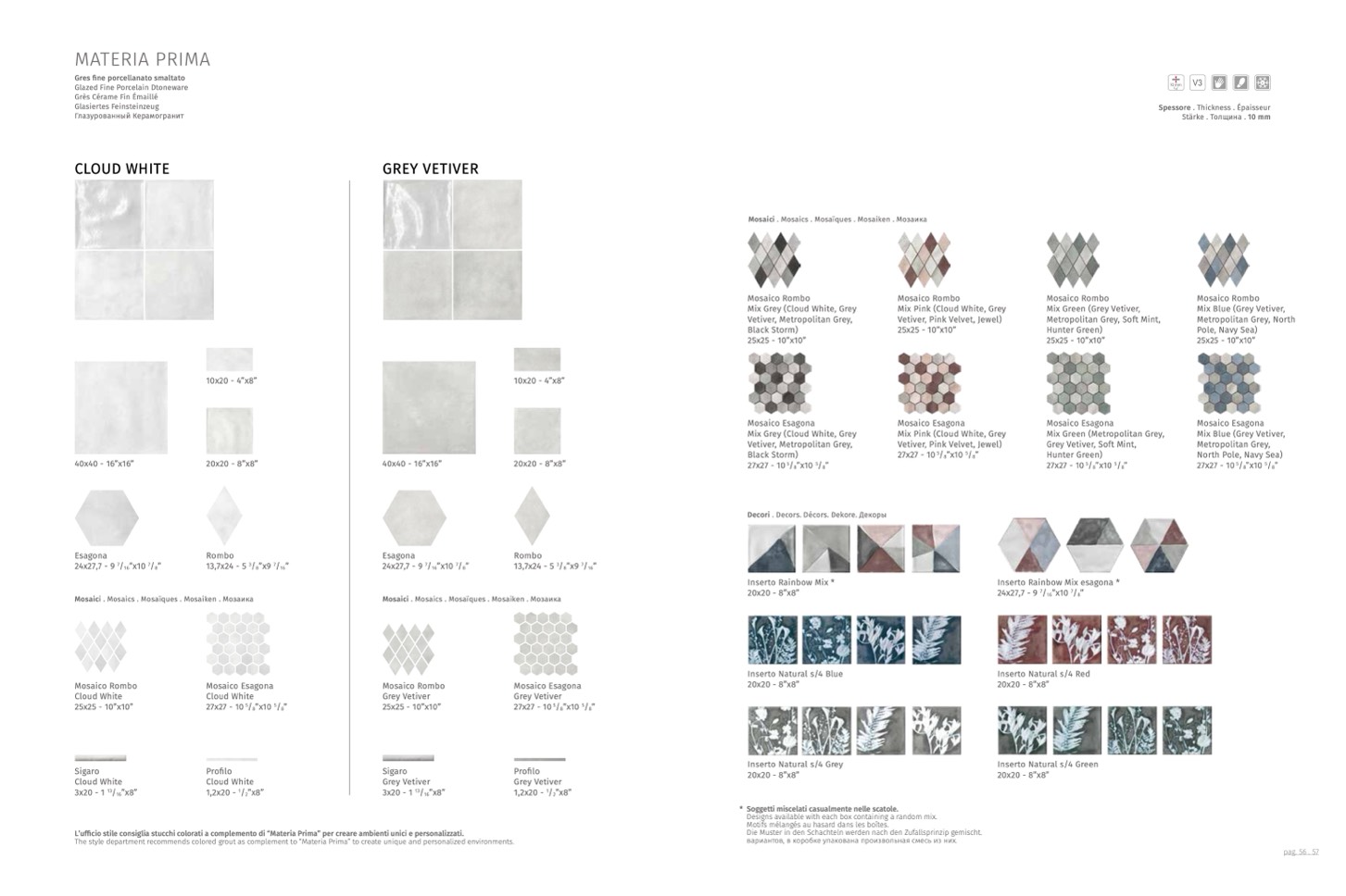 The style department recommends colored grout as complement to “Materia Prima” to create unique and personalized environments.