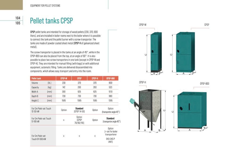 CPSP pellet tanks are intended for storage of wood pellets (230, 370, 800