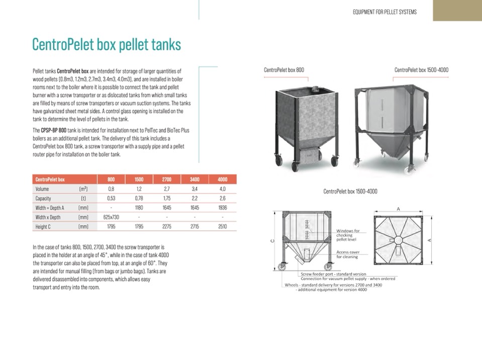 Pellet tanks CentroPelet box are intended for storage of larger quantities of