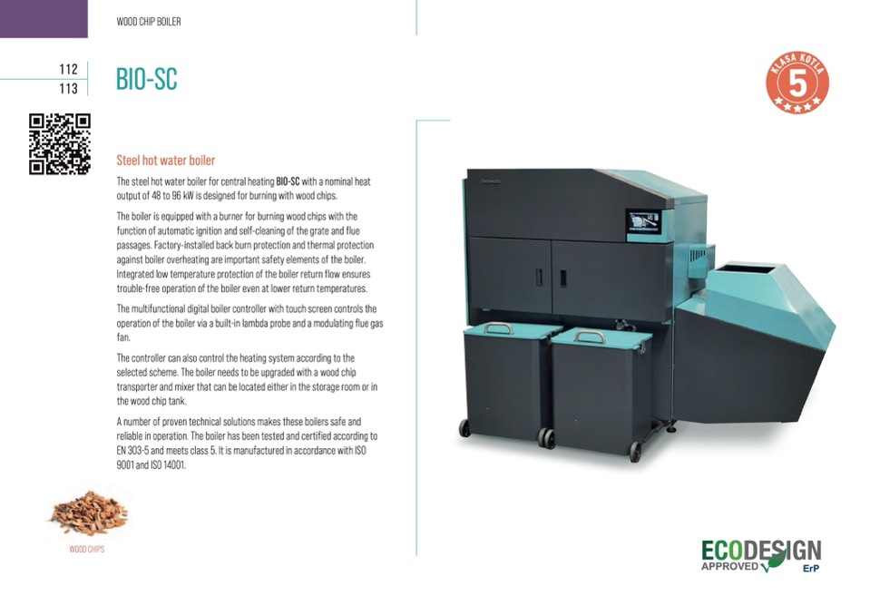 output of 48 to 96 kW is designed for burning with wood chips.