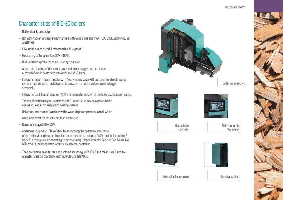 — Hot water boiler for central heating fired with wood chips size P16A (G30), M35, power 48, 69
