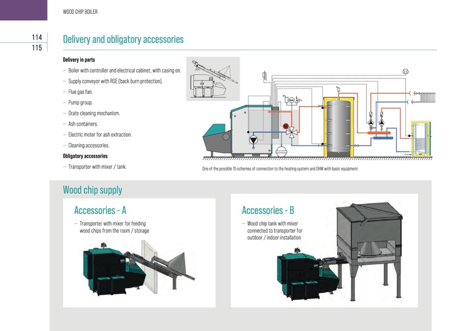 One of the possible 15 schemes of connection to the heating system and DHW with basic equipment