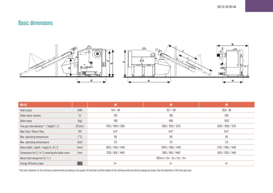 Dimensions for G / H / C entering the boiler room