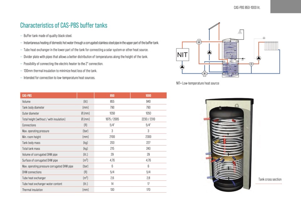 — Instantaneousheatingofdomestichotwaterthroughacorrugatedstainlesssteelpipeintheupperpartofthebuffertank.