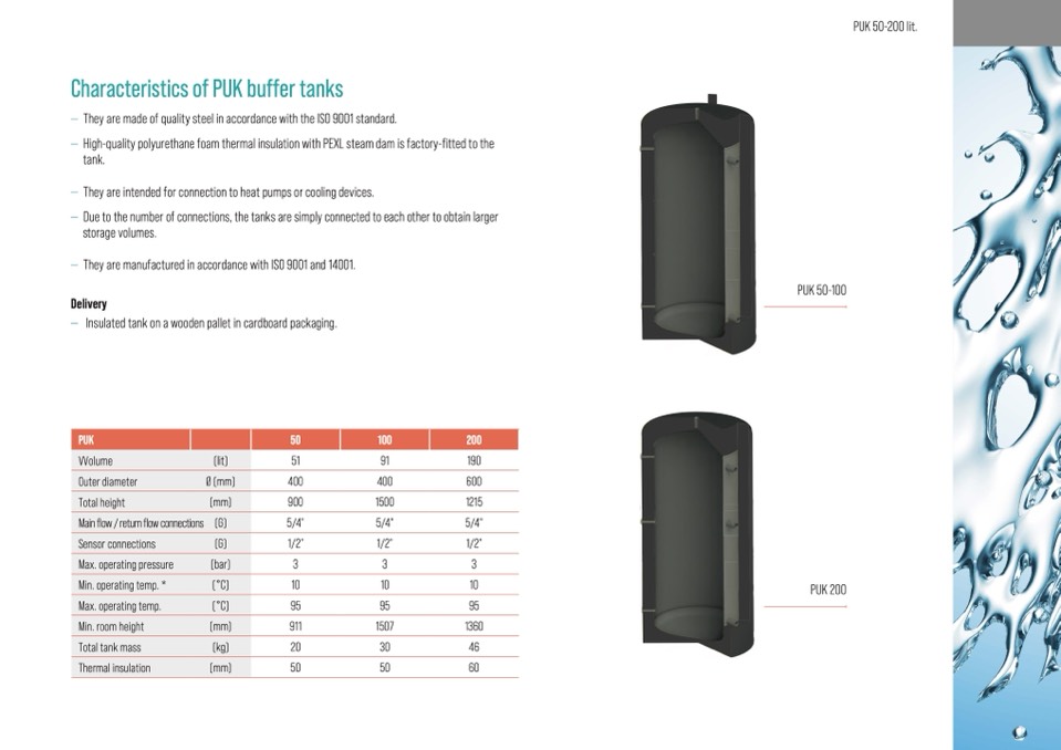 Characteristics of PUK buffer tanks