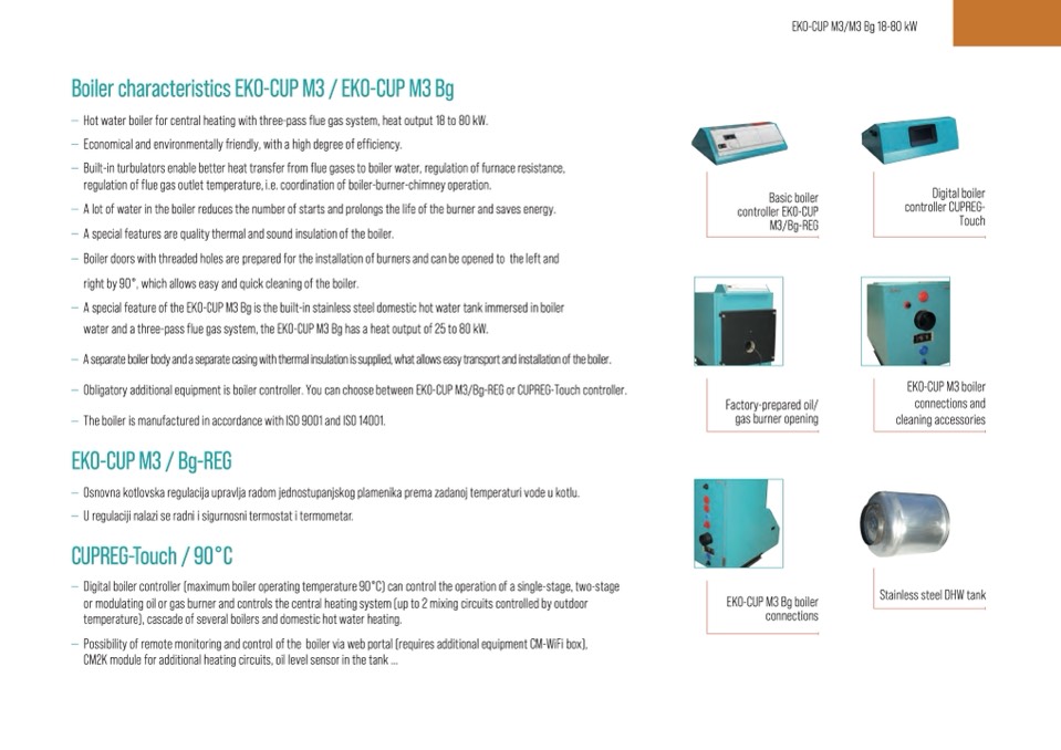 water and a three-pass flue gas system, the EKO-CUP M3 Bg has a heat output of 25 to 80 kW.