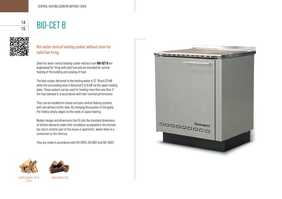 Steel hot water central heating cooker without oven BIO-CET B are
