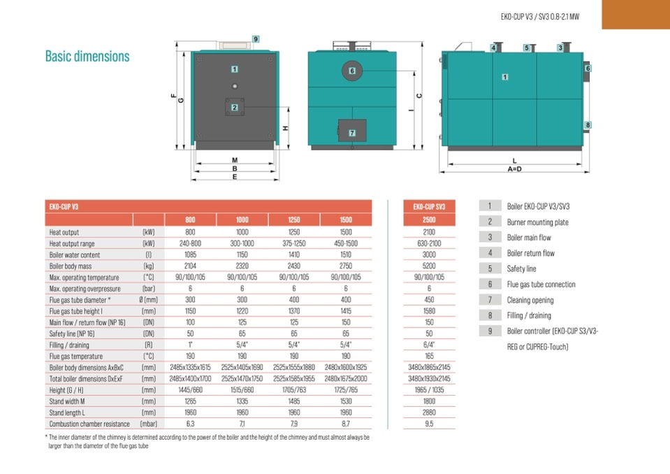 Total boiler dimensions DxExF